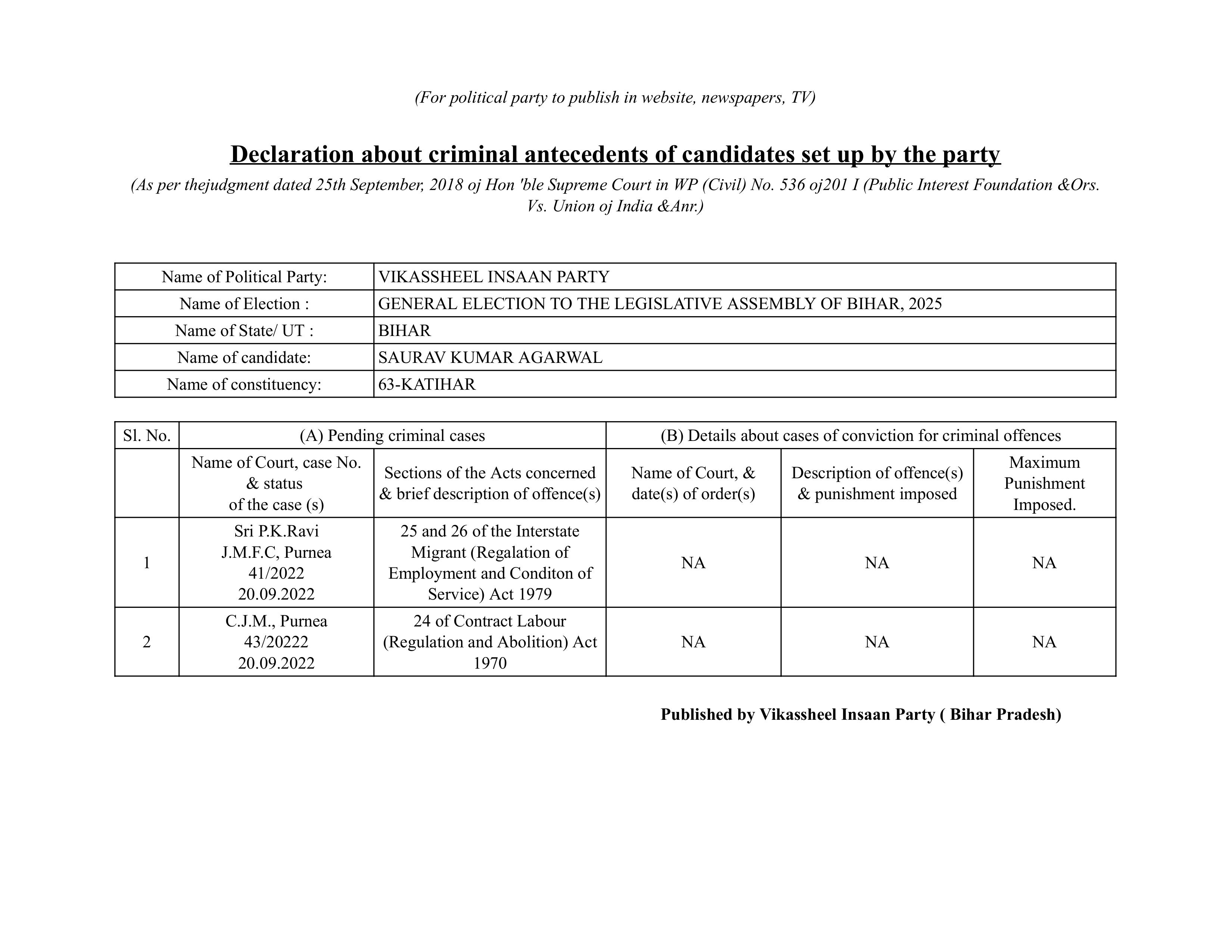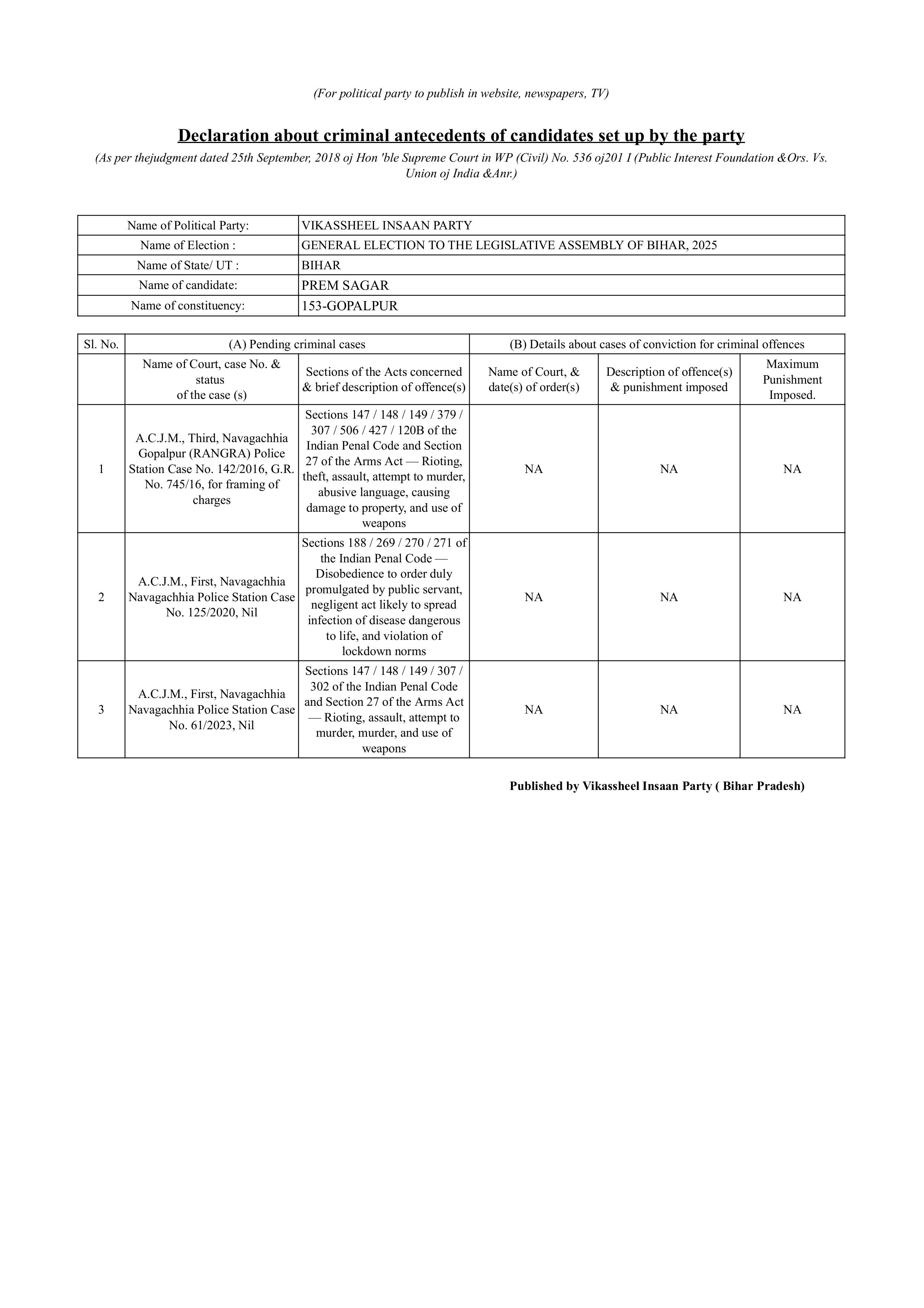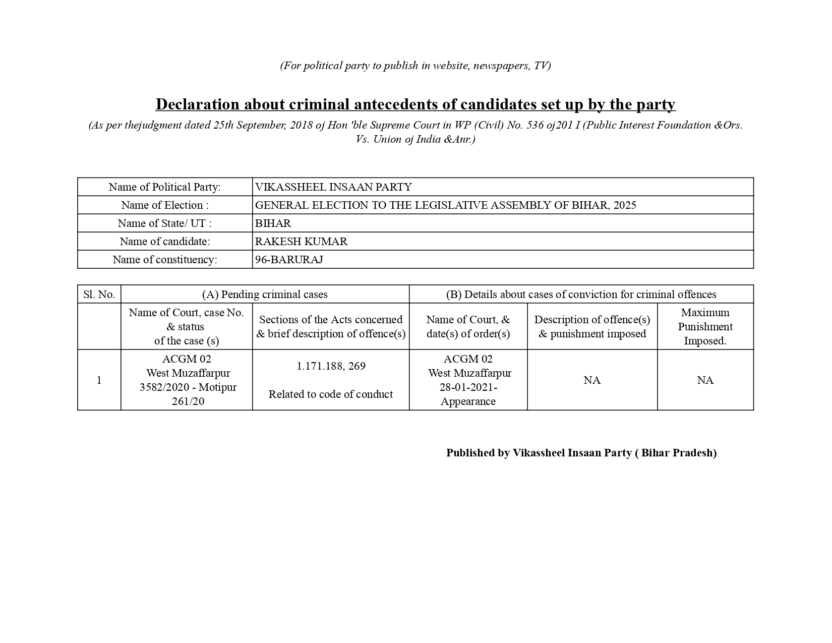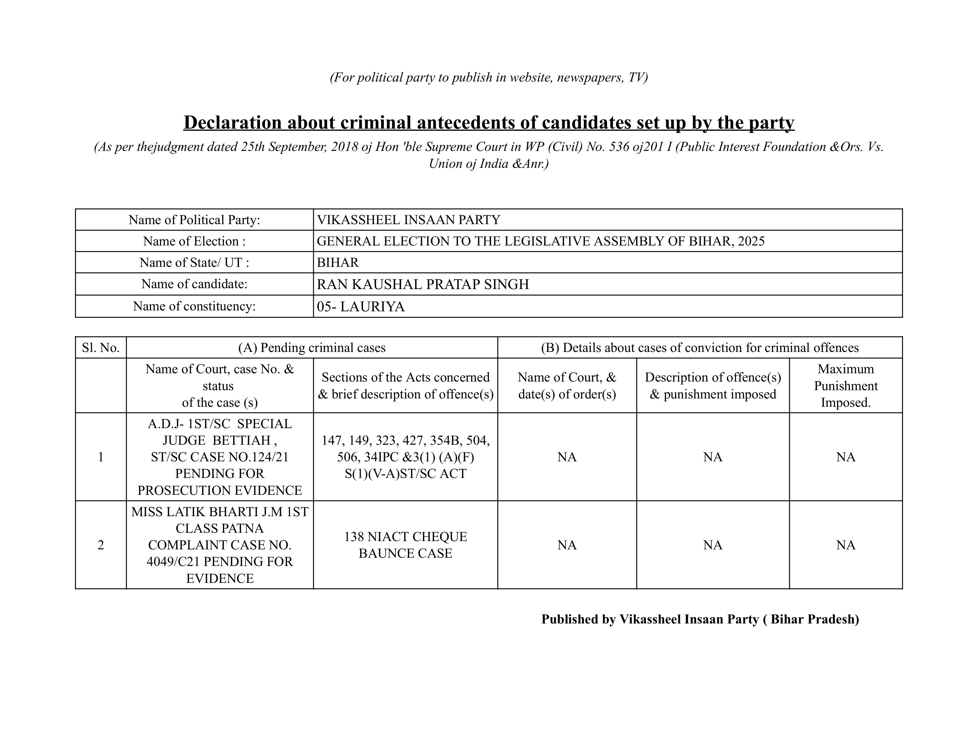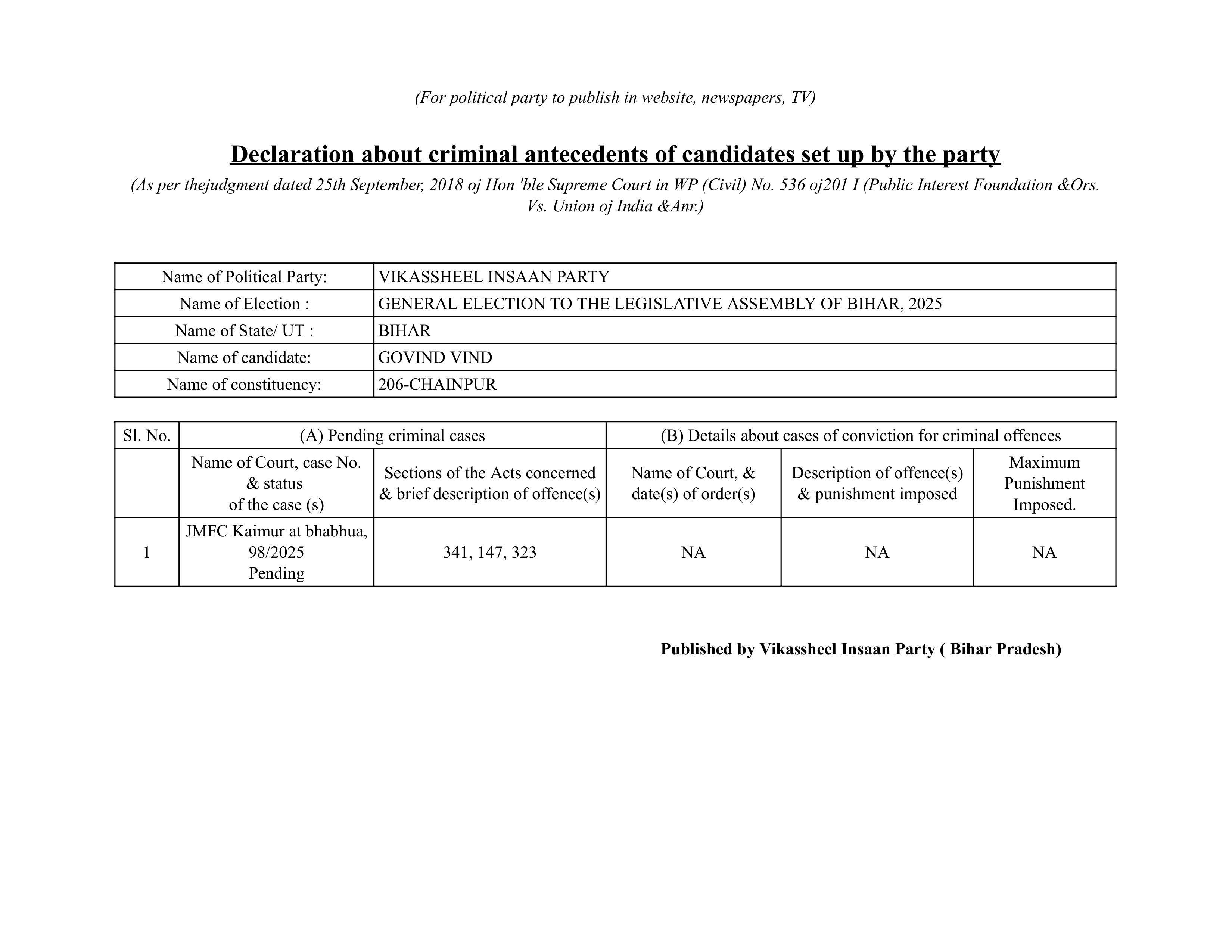 विधानसभा टिकट आवेदन फॉर्म